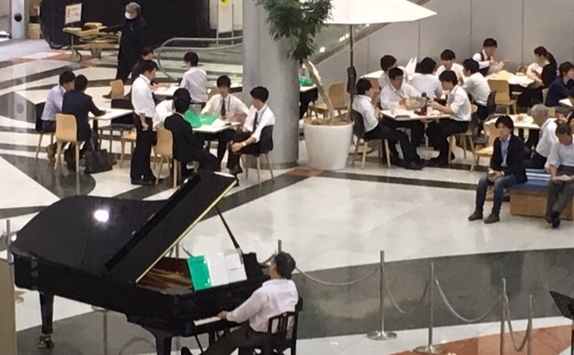 大野さんの素晴らしい演奏で、テレコムアリーナの 2,3,4,5階からも足を止めて聴いて下さる方もいらっしゃいました。多くの聴衆にジャズピアノの美しくも激しい音色がこだまし、清々しいお昼のひと時となりました。
